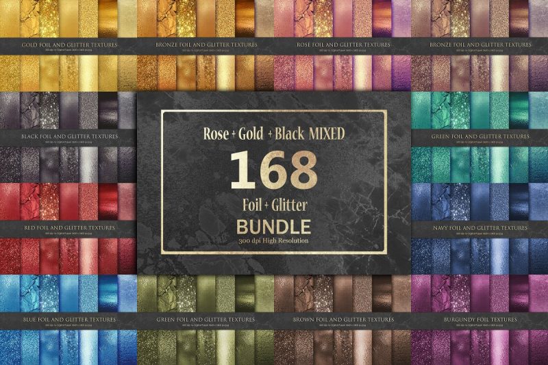 You get 80 high resolution foil and glitter textures along with 10 marble and foil textures. You can get this file with extended license for a standard license price. You can design all kind of print templates using the file.