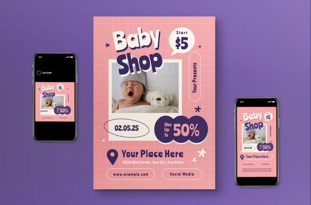 In this article, we have collected flyers to promote different kinds of baby products in a realistic way. This template will help you to promote the business both offline and online. You can design professional posters, social media posts, and website banners for stores by using these templates. Some of the best flyers included in the article are apparel store flyers, toy store poster designs, and toddler flyer designs. Select the best templates from the below collection and customize them according to your requirement.