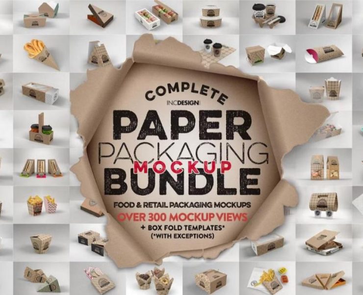 This is a set of complete paper packaging mockups. You get over 200 PSD mockups for presenting the food store branding design. The resolution of the file is 5400 x 3600 pixels with 300 DPI which you can zoom for creating awesome looks. 237 PSD mockups with various mockup scenes are available for branding.