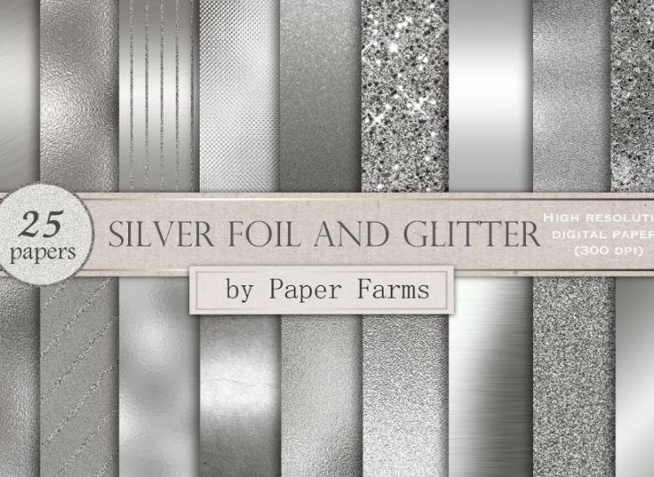This file comes with 18 different silver digital paper textures. You get paper with different mixes of gold, shiny, glitter, glass and metal. All the images are in jpeg format and is of 12 x 12 dimensions.