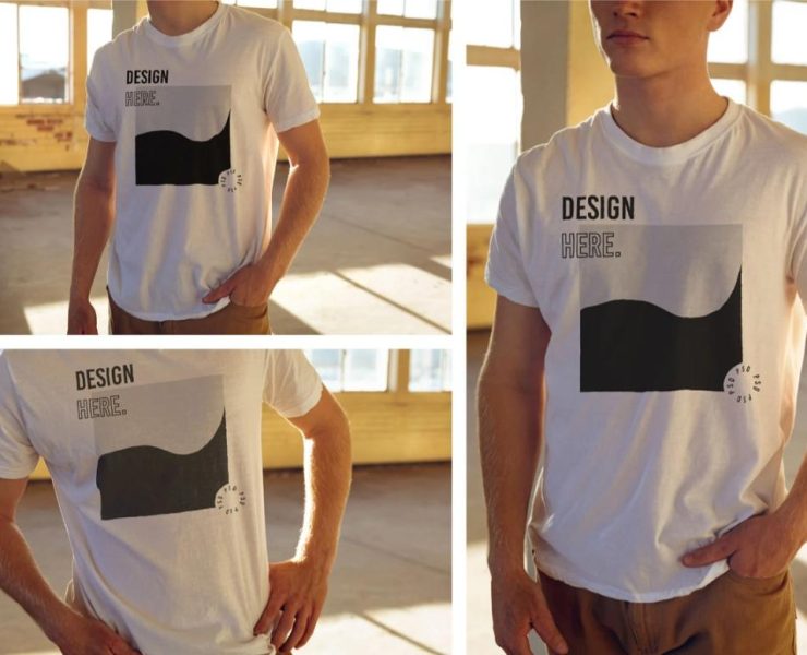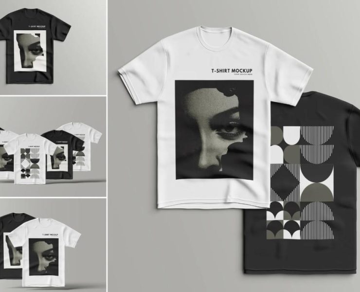 This is a collection of 6 realistic t-shirt mockups for presenting the design. You can place the design on the front and back of the first. This is a fully layered psd file that can be easily customized by using the layers. Use the psd files for showcasing the design in websites.